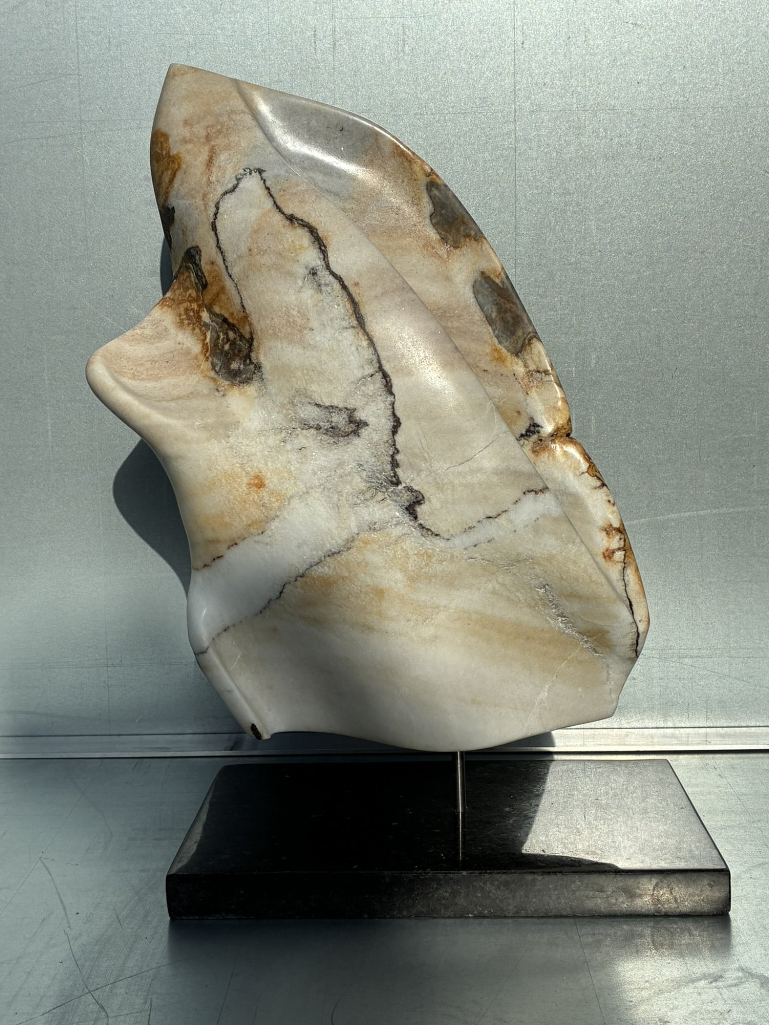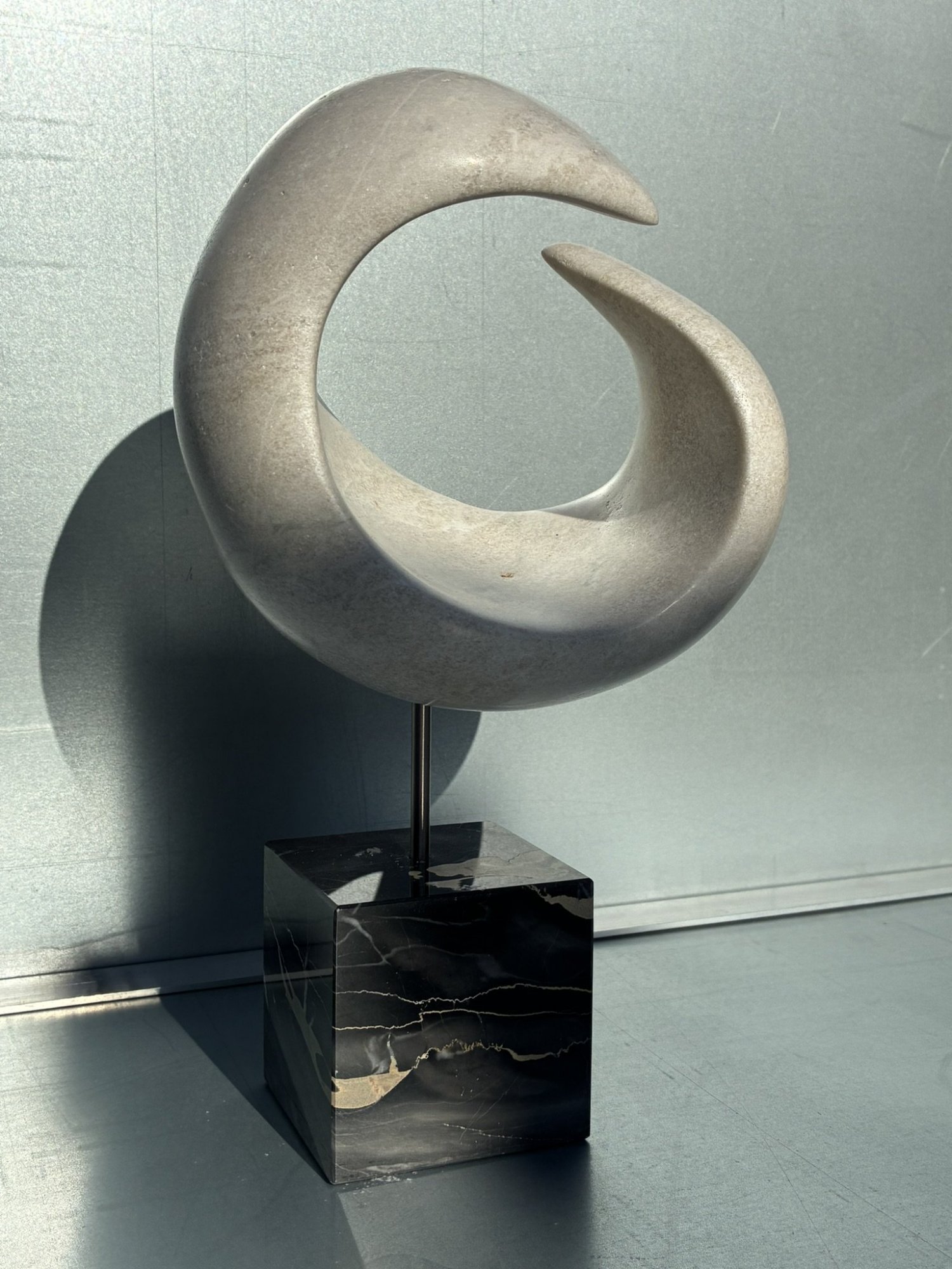 In 2016 volgde ik een vijfdaagse abstracte workshop in de Belgische Ardennen. Daarvoor had ik nog nooit met “de steen” gewerkt, maar het raakte me meteen. Tijdens die vijf dagen leerde ik niet alleen veel over steen, maar ook over mezelf. Het werd een prachtig eerste project dat mij motiveerde naar meer.