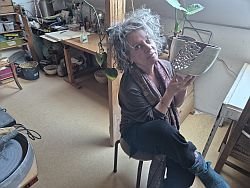Ik begon thuis met kleine handgevormde objecten, maar al snel groeide de behoefte aan verdieping. Ik startte met draailessen bij Miriam van Eijken en kocht niet lang daarna mijn eigen oven en draaischijf. Zo ontstond mijn atelier aan huis. Vele draaiuren volgden, met wisselend resultaat maar altijd met veel plezier. Draaien leer je immers vooral door het veel te doen.