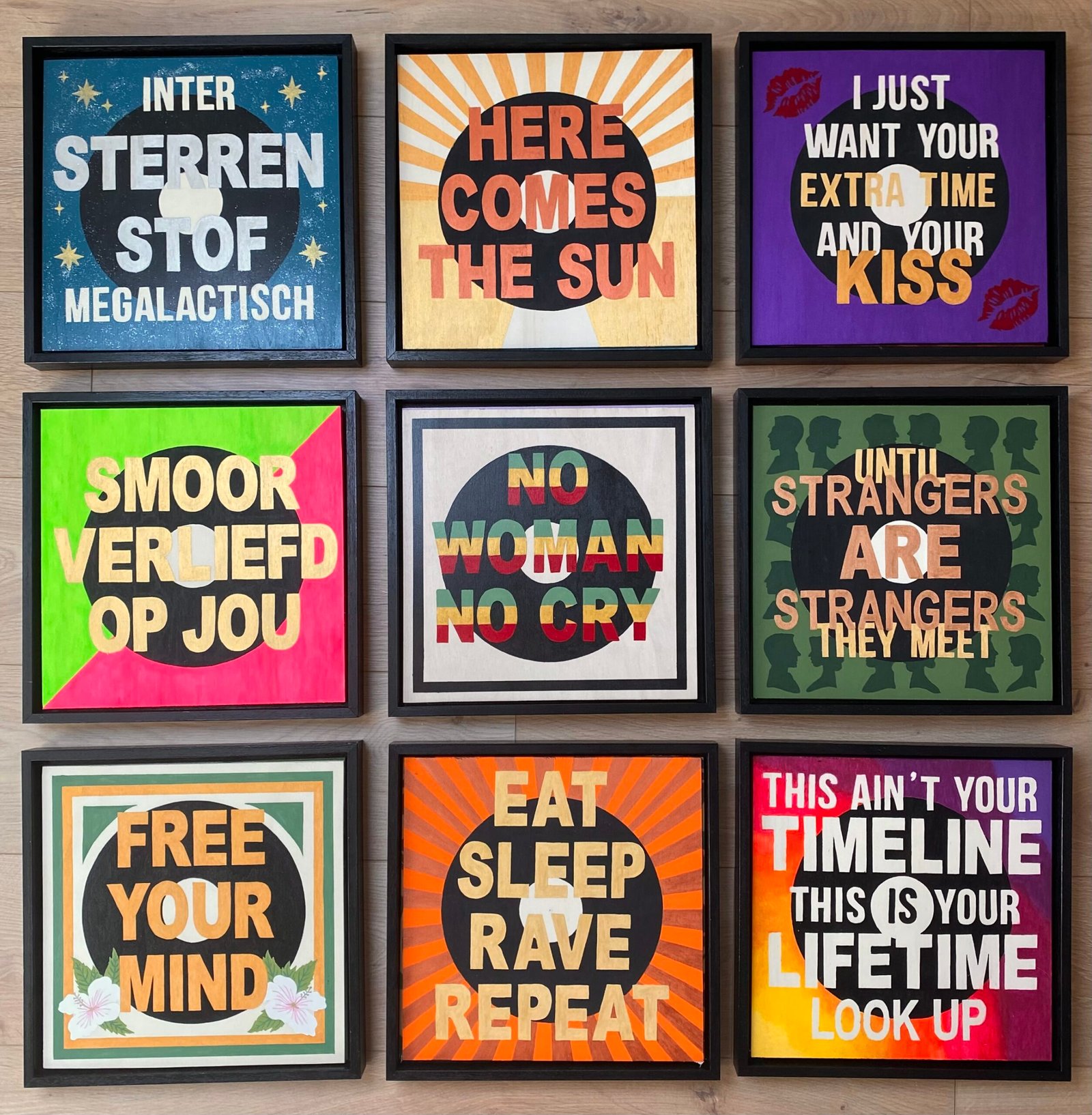 Ook ben ik bezig met een serie ‘platenkunst’, waarin ik misschien wel de regel uit jouw favoriete liedje heb verwerkt. Kom lekker neuzen in de platenbakken in mijn mini platenwinkel 😉