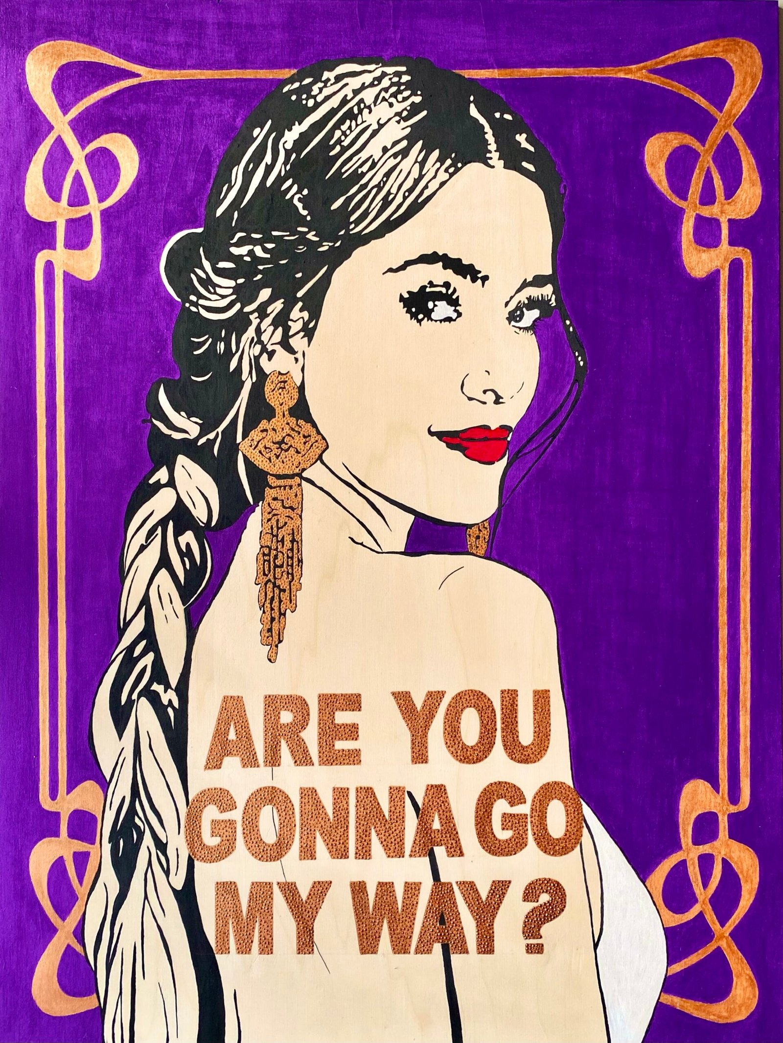 De stijl van mijn schilderijen is grafisch; Popart met een vleugje Art Nouveau, Art Deco en Jugendstil.